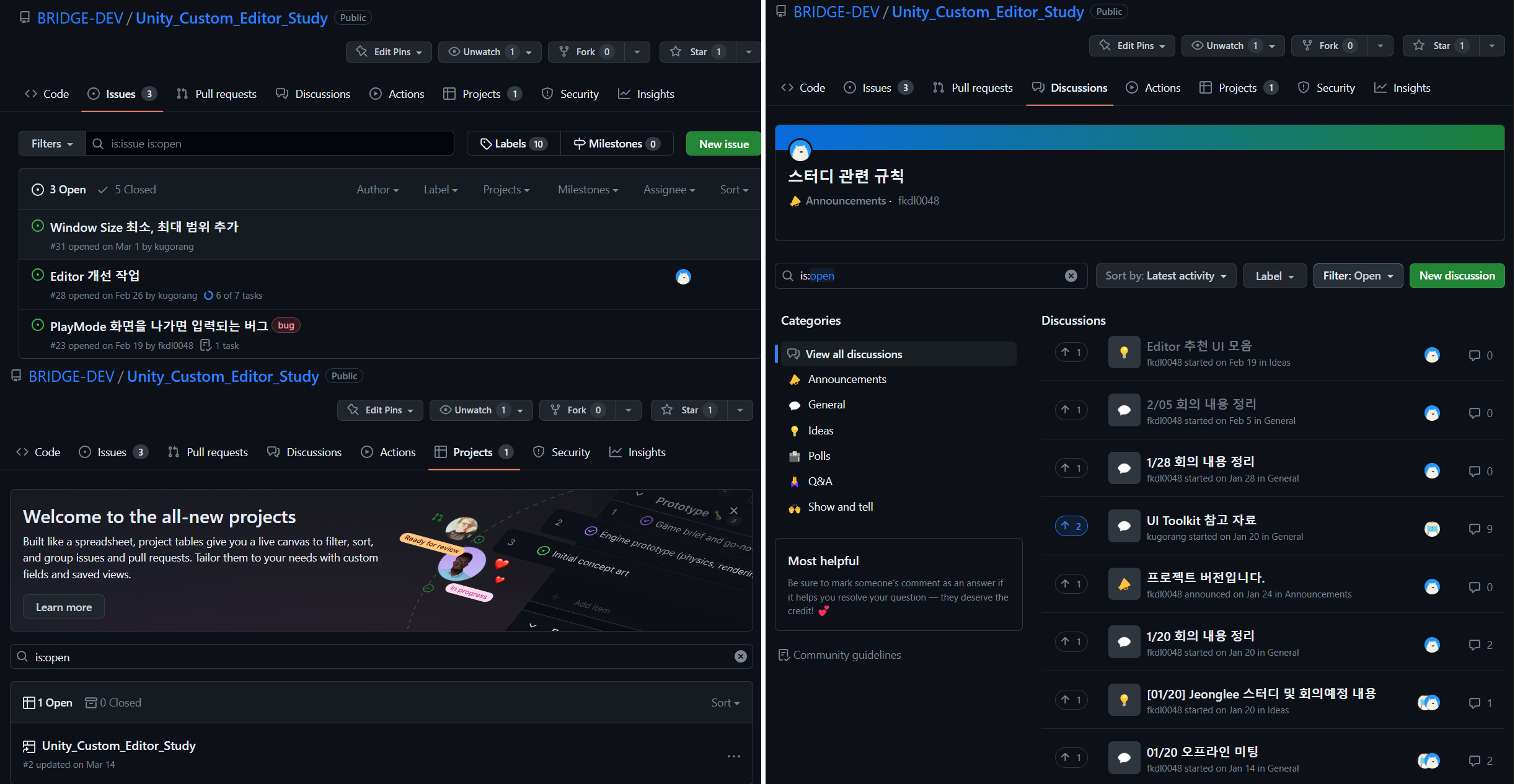 - 프로젝트 기록은 Github Discussion을, 급한 의사소통은 Discord를 활용