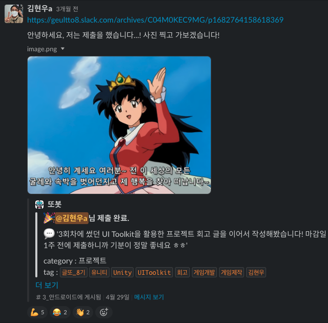 마지막으로, 올해 졸업 프로젝트에 대한 회고글을 이번 글또 8기 안에 쓰고 싶었는데 결국 쓰지 못한 것이 아쉬웠다. Unity를 활용한 AR 기술을 공부하여 캡스톤디자인이라는 졸업 프로젝트를 진행했고, 앱을 제작했는데 내 기억에서 휘발되기 전에 블로그에 꼭 정리하는 것이 목표이다.