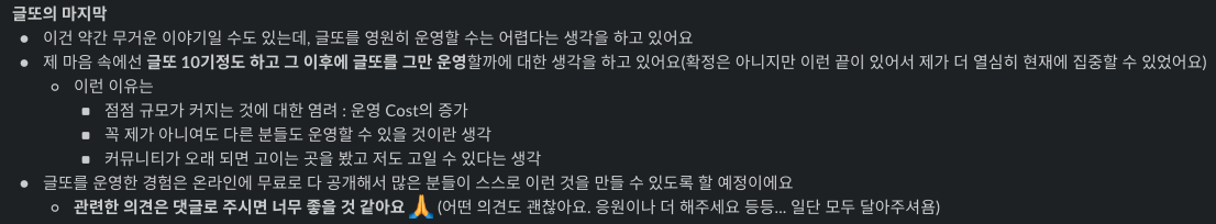 글또 8기가 끝날 쯤, 글또의 마지막에 대한 공지사항도 같이 올라왔다.