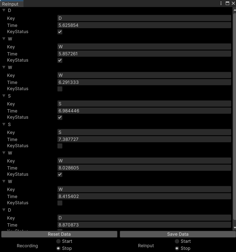 - Editor 창에서 녹화 (Record), 다시 재생 (ReInput)의 시작 및 중지 기능 추가